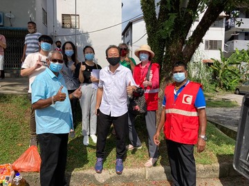 Here I had a chance to talk to Mr. Nelson Lim Thow Loon of Evergrown Technology Sdn Bhd. With his company shut down during the MCO period, he decided to launch a Food Aid Program to help people who had lost their jobs and were struggling. Nelson set up an NGO called the Evergrown Charity Program and you can get more details from their FB page. His motto is “We can do no great thing, only small thing with great love”. Here is Mr. Lim working alongside the MRC to help provide and distribute food goods.