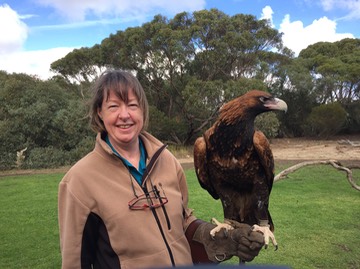 Here is an adult wedge-tailed eagle; we were not allowed to touch this one! It too was paying attention to the wild wedge-tailed eagles in the skies above.